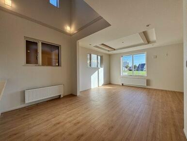 ■ファミリーにおすすめな3LDKタイプの間取りで、折上天井で広々20帖と開放感を感じるリビングです。