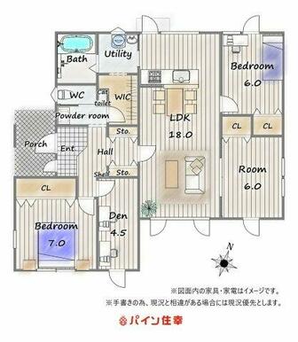 カウンターキッチン システムキッチン 全居室収納 ウォークインクローゼット 床暖房 クローゼット モニタ付インターホン 食器洗浄乾燥機 3口以上コンロ 省エネ給湯器 上水道 下水道 都市ガス 電気 エアコン 照明器具 温水洗浄便座 |