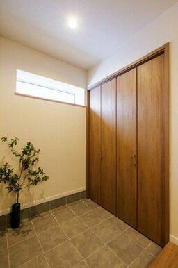 ■玄関の土間収納にはコート掛けも設置